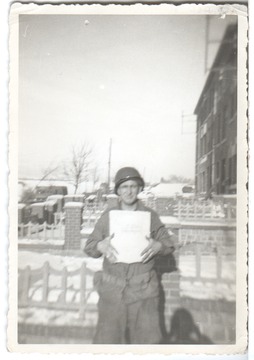 Joseph C Crane in Austria 1945 holding his orders to ship home