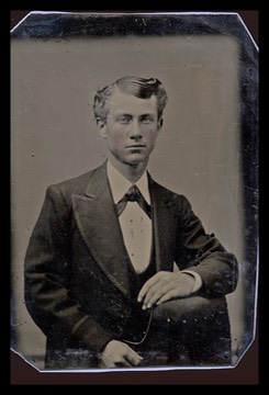 FOURTH IMAGE: Unidentified man in 20s or 30s in suit with very wide lapels (tinted daguerreotype)