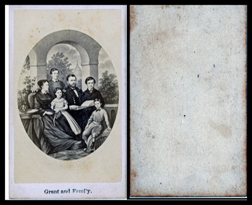 THIRTY SECOND IMAGE: GRANT FAMILY (‘printed’ CDV General Grant with a military uniform posing with his family)