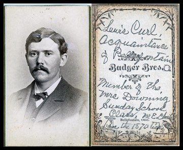 FORTY SECOND IMAGE: “Lewis Curl LEWIS CURL ACQUANTAINCE OF BELLEFONTAINE MEMBER OF THE MRS. DOWNING SUNDAY SCHOOL CLASS M E. OHIO IN THE 1870 TIES(?)”